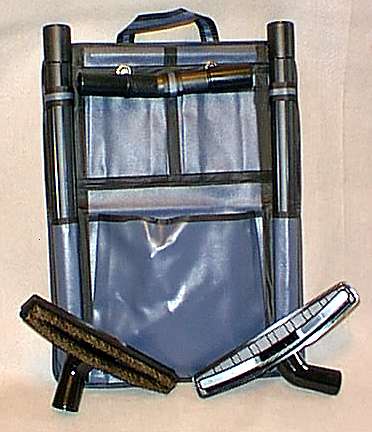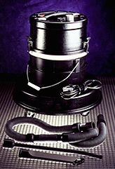 Express Vac, our smallest vacuum, weighs 8 lb. (with accessories and box) and has a top handle. Measures 12”x 8.25”x 9.5”. Fabric carrying Tote sold separately. Three filtration systems are available: (1) a bag and shell filter combination, (2) a disposable, anti-dump canister filter in a recycled plastic housing or (3) a HEPA filter cartridge. Low suction makes this vacuum ideal for collection cleaning. See micro-tools under accessories.